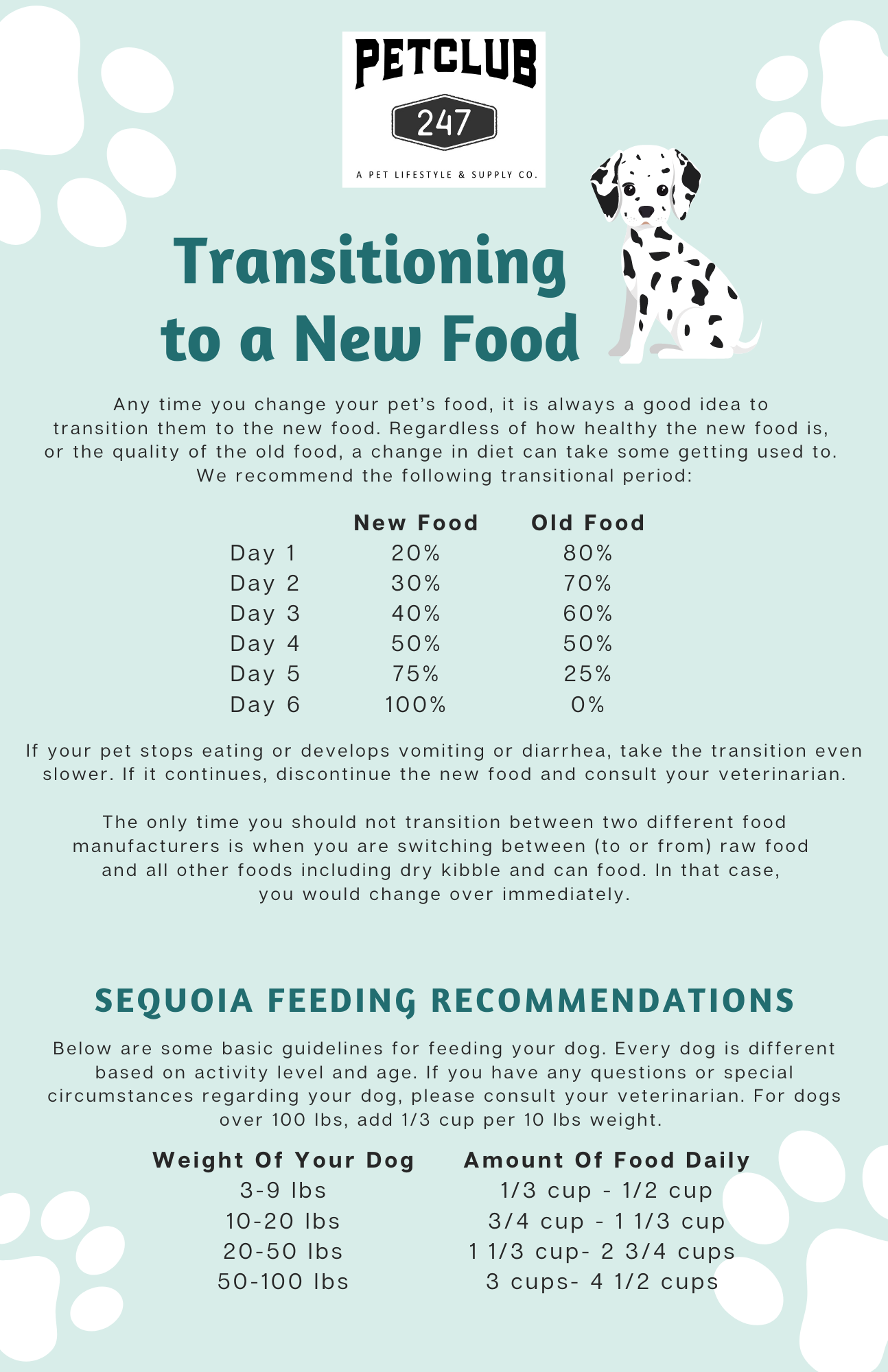 Any time you change your pet’s food, it is always a good idea to transition them to the new food.