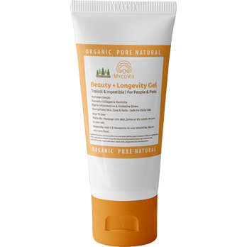 MycoVie Beauty + Longevity Gel is a revolutionary, dual-purpose gel designed to support beauty, skin, and graceful aging. Whether massaged into skin or scalp, or stirred into your morning smoothie or pet food, this plant-powered gel delivers a concentrated dose of nature’s most powerful and helpful ingredients, making it a truly universal approach to address aging and cellular renewal.
