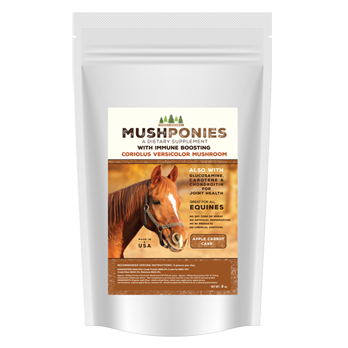 An Immune Supporting Supplement that features the Coriolus Versicolor Mushroom. Great for horses and all other equines. Includes Glucosamine, Carotene and Chondroitin for Joint Health. The Coriolus Versicolor Mushroom is an all-natural botanical found to help support the body’s own immune system. It is widely known that the immune system is the body’s first defense against the smallest of issues to the most concerning. There are over 400 studies worldwide conducted on Coriolus Versicolor on its immune supporting properties including such notable institutions as Sloan Kettering Center of New York, MD Anderson of Texas and one completed by the University of Pennsylvania School of Veterinarian Medicine. We have been providing our proprietary blend of Coriolus Versicolor for over ten years for both humans and pets. Our process ensures a highly potent strain of Coriolus Versicolor, harvested at the mycelia stage (not the fruited body), and ensures the highest quality of polysaccharide peptide (PSP) and polysaccharide krestin (PSK). These tasty supplements feature an Apple Carrot Cake recipe.